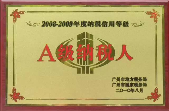 (2008-2009年度A级纳税人荣誉牌匾)